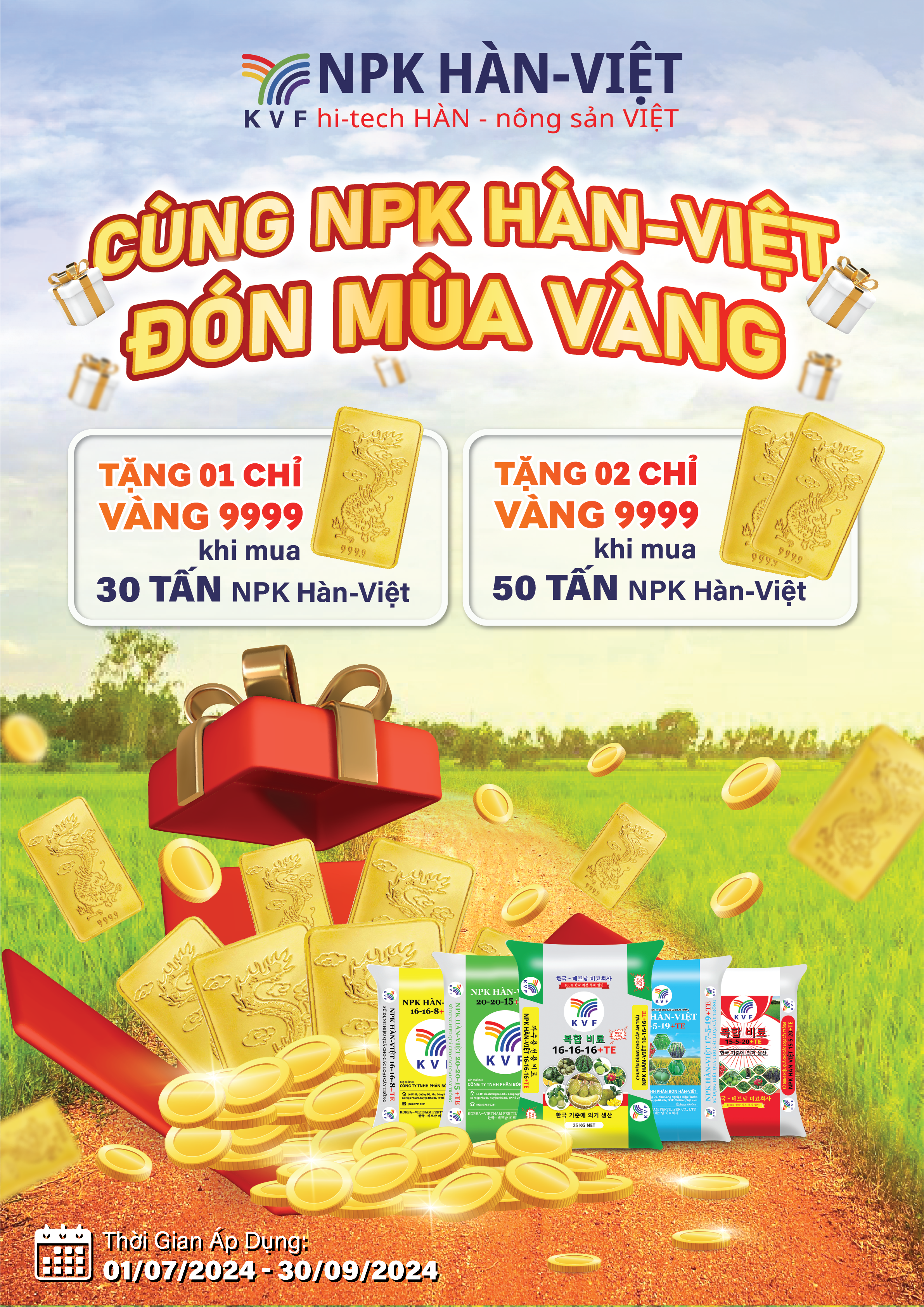 🔥MUA 50 TẤN NPK HÀN-VIỆT ĐƯỢC TẶNG 02 CHỈ VÀNG 9999